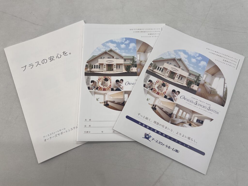 アーススウィートホームで家と建てたお客様に、とても喜んでいただいているのが「オーナーズサポートシステム」です。家は、定期的なメンテナンスが必要です。アースでは「お家のカルテ」をしっかり管理しています。暮らしの中でのトラブルがあっても、お客様の家のことなら、しっかりとカルテがありますので、あらゆることに対応し、長く快適に住める環境をサポートできます。さらに、保険や税金も含めた総合的なご提案もできますので、家にかかる費用をトータルで抑えることもできます。家づくりに関わるあれこれは、経験しないとわかりにくいことが多いもの。土地・住宅・資金のことはもちろん、建てた後のことも、ワンストップで相談していただけるため、思っていた以上に心強かったという声をいただいています。