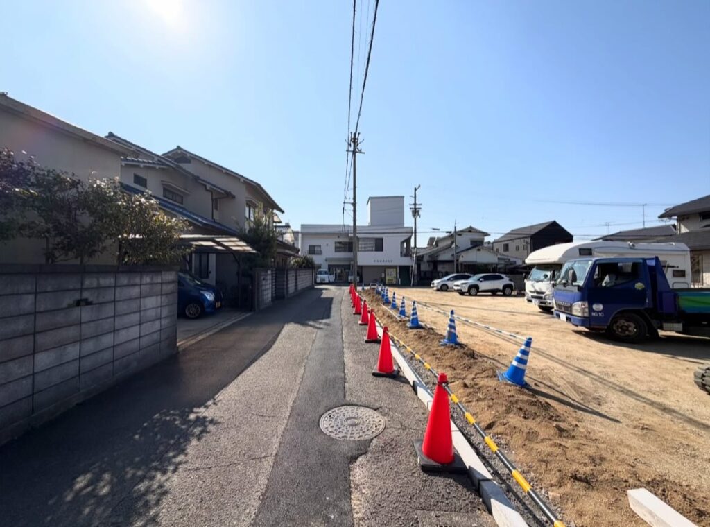 フジグラン松山やエディオンなど大型商業施設の近くですが、大通りから2本入った通りにある分譲地は、静かで落ち着いた住宅地です。